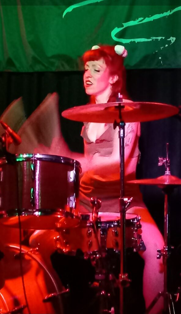 Many of the songs had a feminist theme, but ‘Ooga Booga Kinda Love‘ was an ode to a male brute, with some amusing ‘spear’ metaphors in the lyrics (Cavegirl mentioned that this particular song was a little awkward to perform in front of her dad during the previous night’s gig). The band’s tribute to the iconic Bettie Page was up next, called ‘The Tragic Tale Of Bettie Page’.