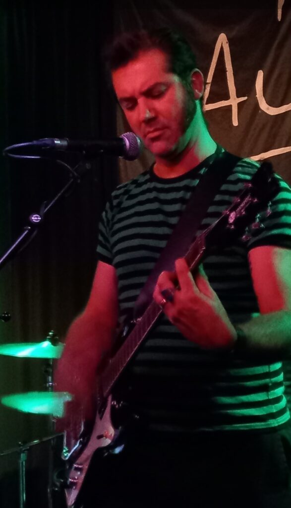 The main support of the afternoon were The Tridents, who are based in Brighton, and who helped organise the event today along with Stay Sick promotions. They formed in 2022 and have played their self-described “spaghetti-flavoured surf music” all across the UK, releasing their debut EP in 2023 (‘Fiat Panda Escape Sequence’). They have a new album coming out soon, titled ‘Creature From The Hove Lagoon‘, from which a few songs can be heard on their bandcamp page. The band is made up of Kevin (Guitar, vocals and whistling), Ross (guitar), Jamie (bass) and Chris on the pots and pans.