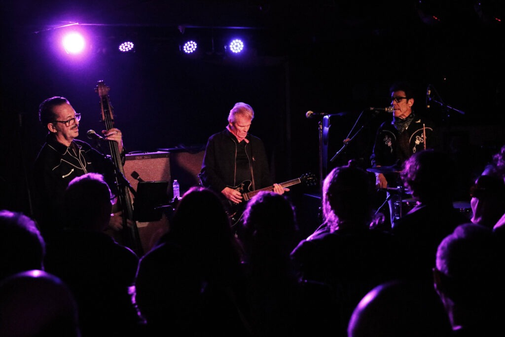 Jack Scott’s ‘The Way I Walk’ has been covered numerous times, most notably by The Cramps. STARCAT’s version starts in familiar fashion before turning into a welcome extended jam. From one of rockabilly’s most iconic songs to the Stray Cats equally iconic ‘Stray Cat Strut’, all West Side Story swagger with added leather. There’s a new tune next with ‘California Beach House’ which more than holds up to the rest of tonight’s set.