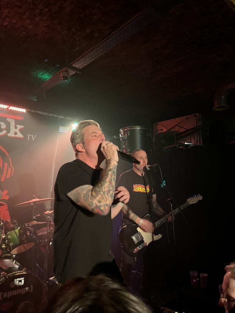 It’s heartening to arrive at the sold-out venue early and see that the place is already a good two thirds full before anyone’s even played a note, and as we enter, the DJ segues Goldfinger’s ‘Spokesman’ into Jesse James’ ‘Shoes’. Ahh, we can feel the years just melting away!