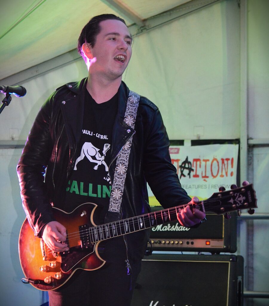 Part of the festival who many were looking forward to – going by the number of band T-shirts in the crowd – Eastfield played a cracking set! The band were in fine form – “We’re a goth band” joked lead vocalist /guitarist Jessi – nah, they are pure punk rock n roll! A DIY band with a true punk spirit and ethos, Eastfield say “Humour can be a powerful weapon to use against and poke fun at the establishment. Musically we play 3 chord, sing-a-long, simple catchy songs.” The audience most certainly did sing and dance along, as the band blasted out their engaging songs, including ‘Pin Me To The Moral High Ground‘, ‘Railyard Blues‘ and ‘Paper Houses‘ – enjoy the video below!