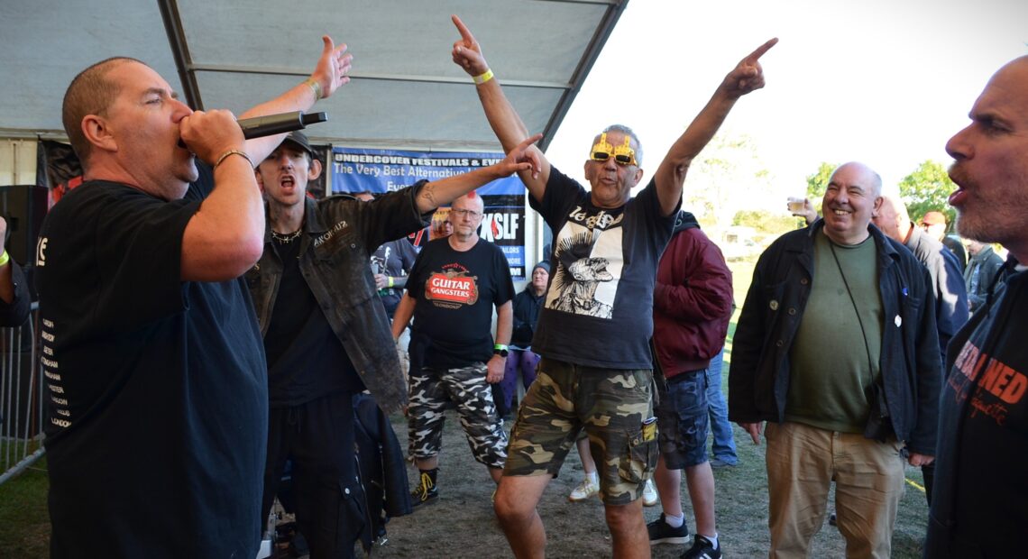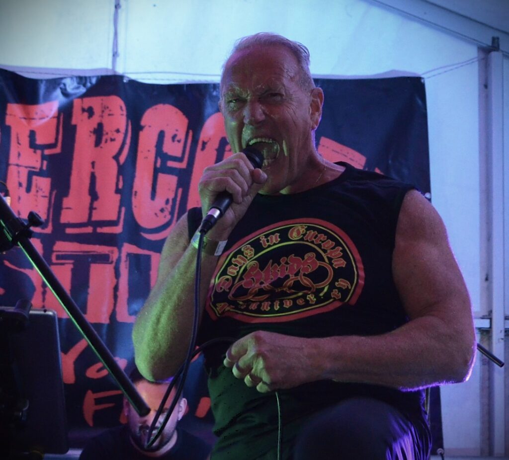 Approaching their 50th year, the mighty Menace brought their own brand of musical mayhem to the Main stage as dusk fell. Fronted by original member Noel Martin, as always a bold stage presence, they swung into action with ‘Screwed Up‘, ‘Insane Society‘ and ‘Monkey‘ with the crowd bouncing and singing along! A surprise ‘Happy Birthday‘ from Noel and a cake from Tash appeared during ‘C&A‘ for Mark who was celebrating his 60th: